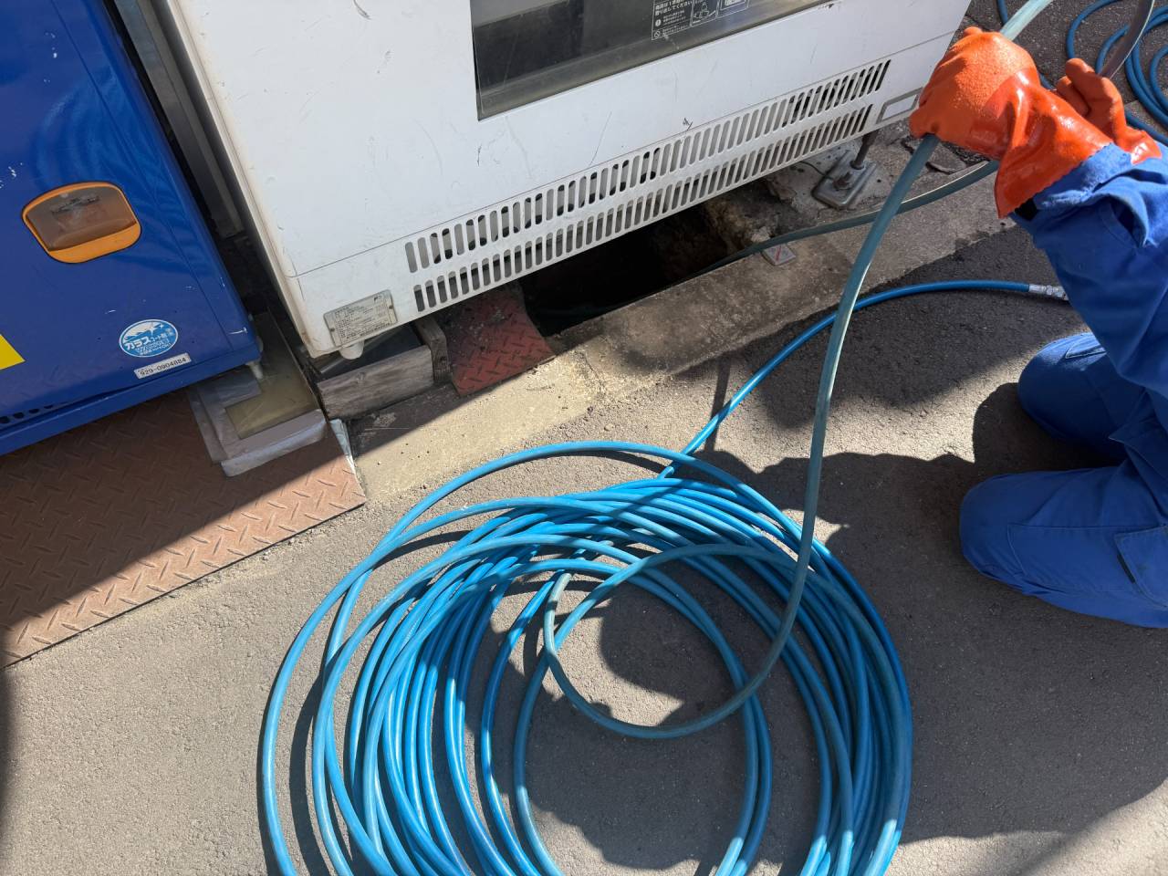 排水管が詰まっている事が分かり、屋外の会所から高圧洗浄をすることになりました。