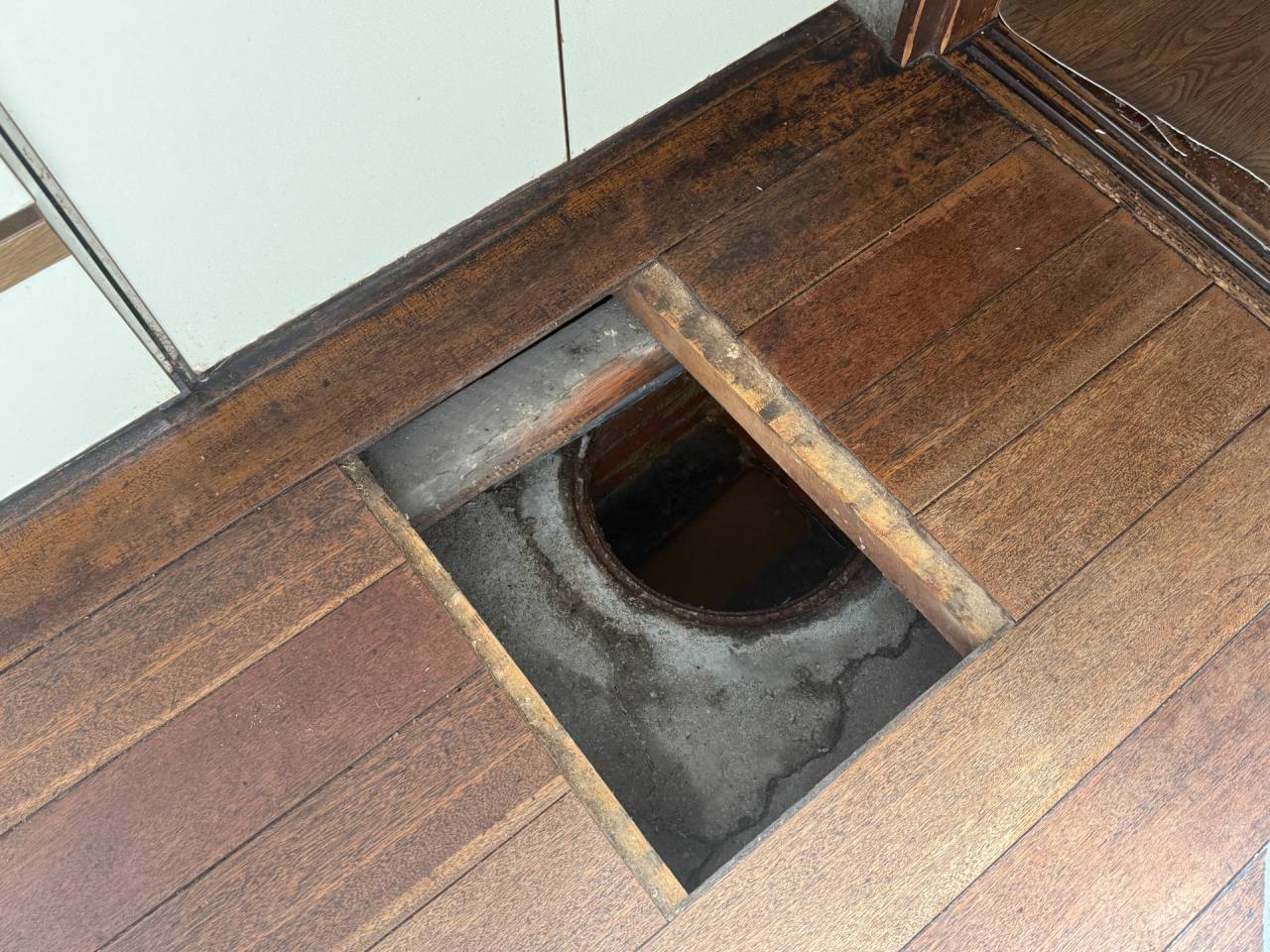 現場に到着して確認してみると詰まっているのはトイレではなく床下に配管してある