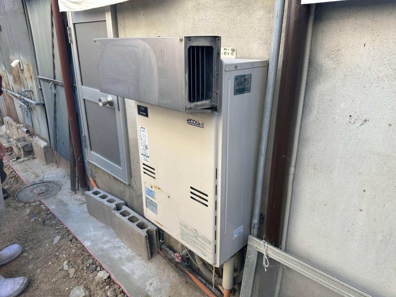 阿倍野区の戸建て住宅の給湯器取替リフォーム工事です。