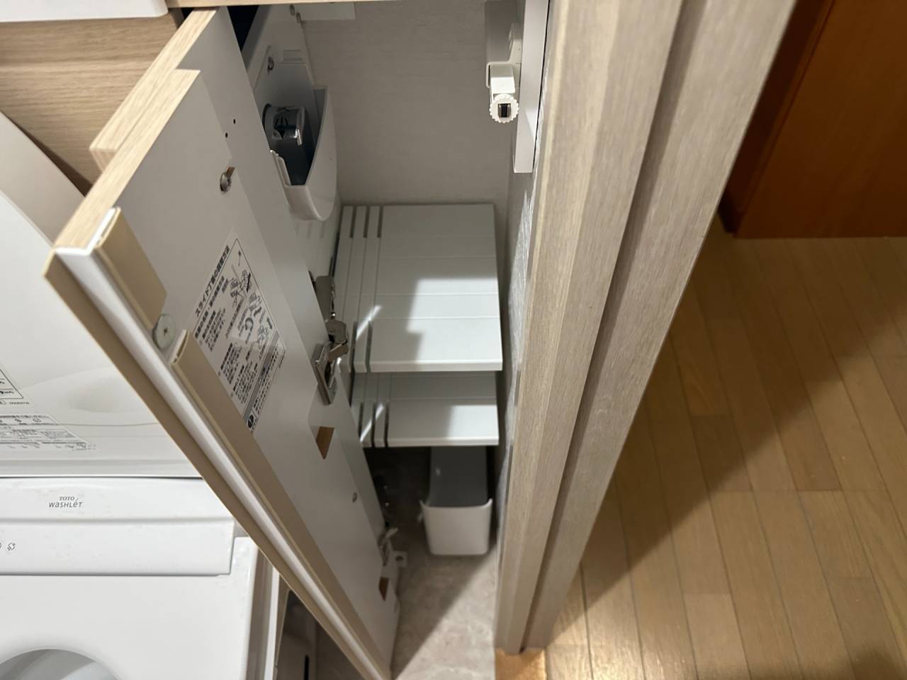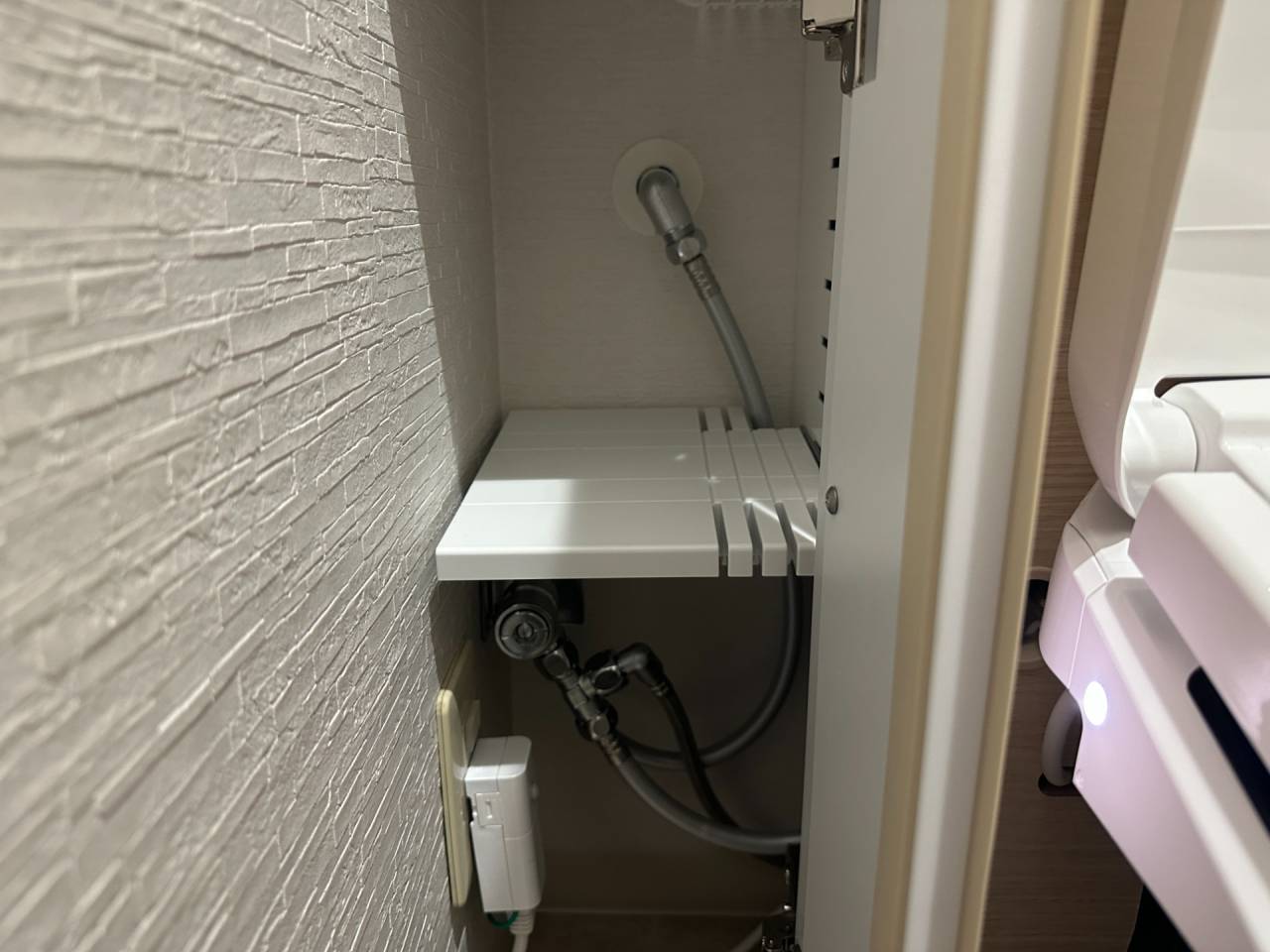 収納と手洗い器が一体化しているので収納内に配管が隠れるので