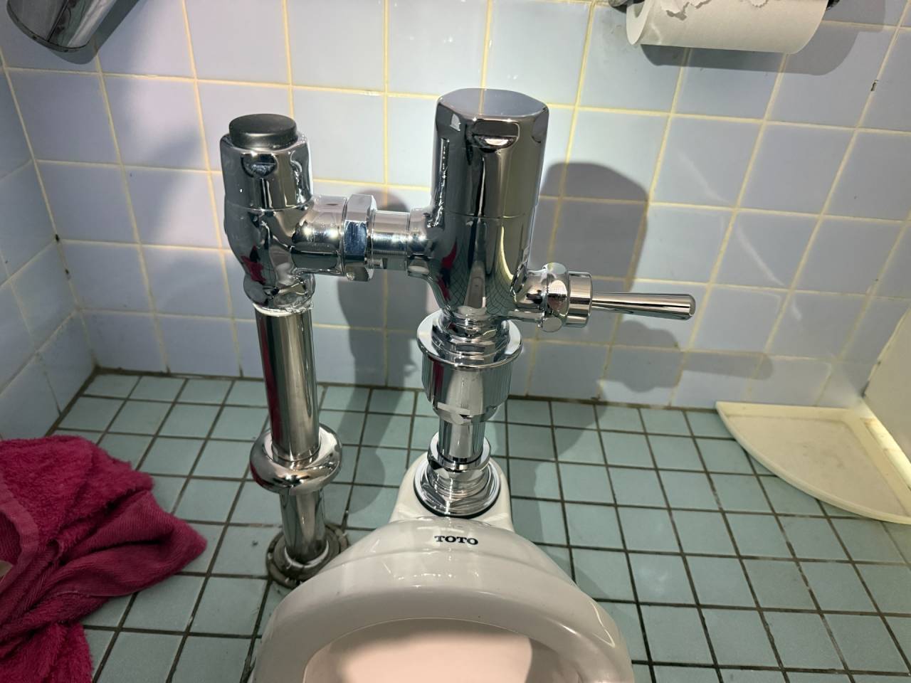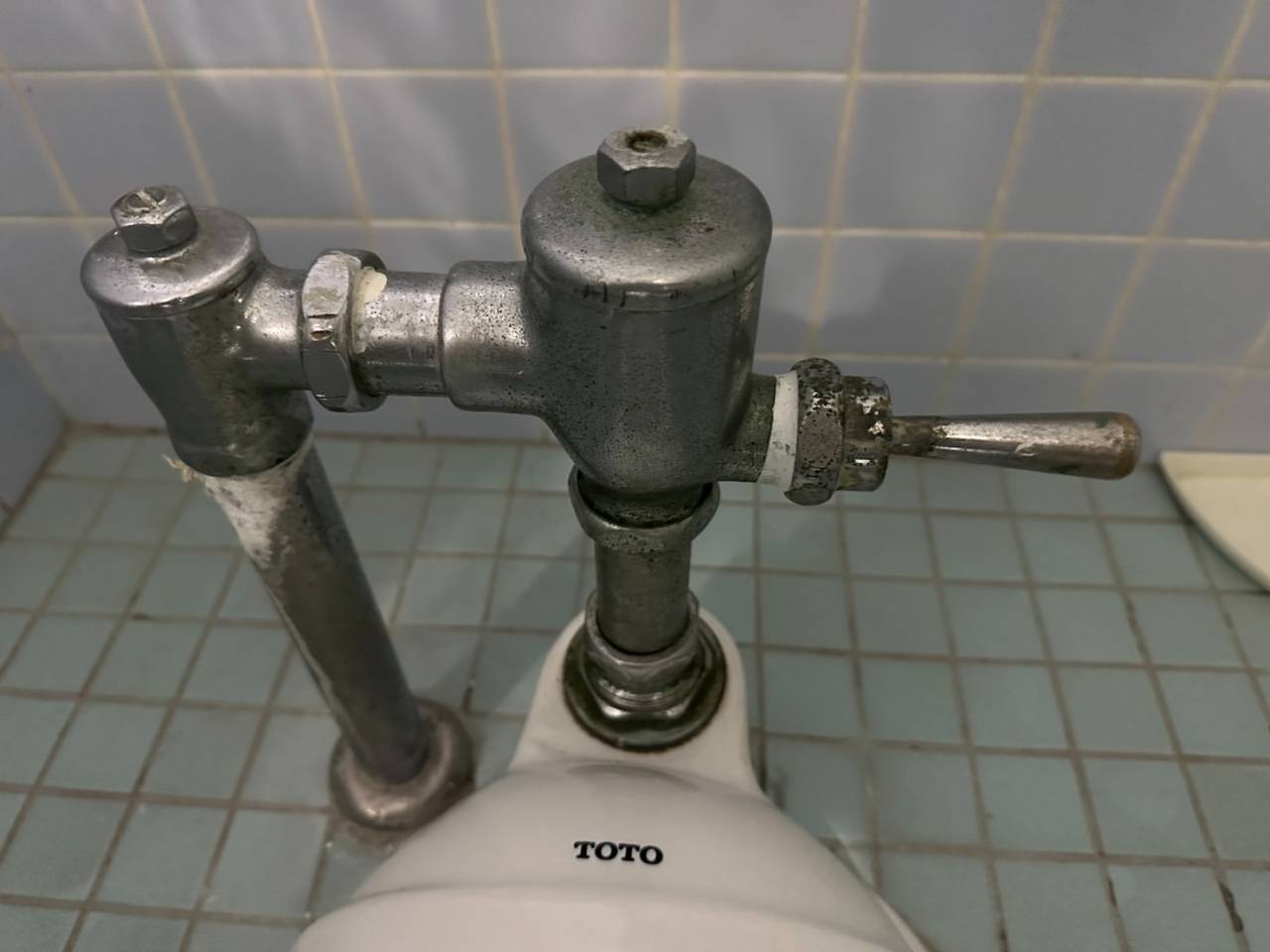 天王寺区のオフィス内共用トイレのフラッシュバルブ取替工事です。