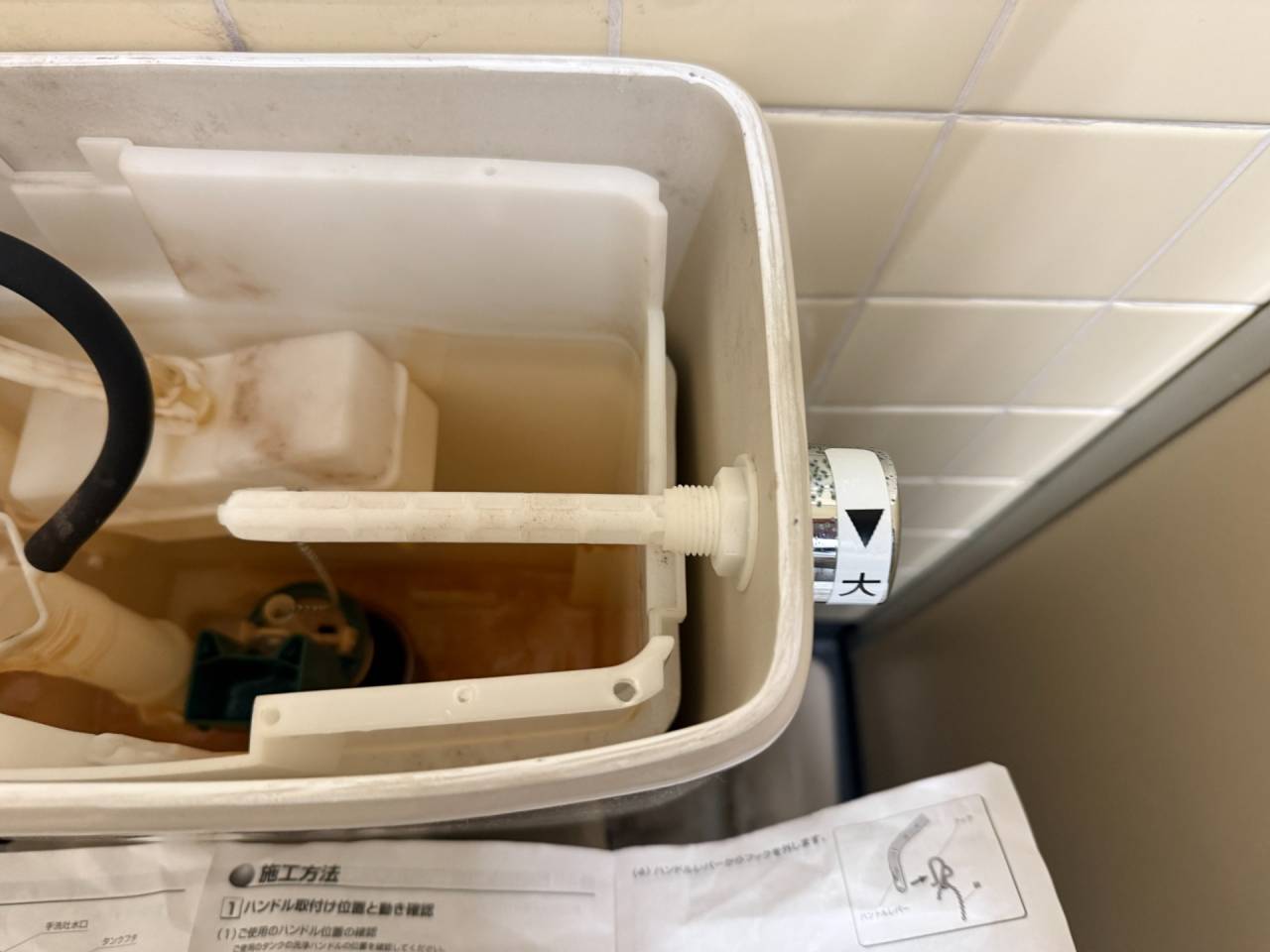 大阪市中央区 テナントビル内の共用トイレのトイレタンクハンドルレバー取替工事
