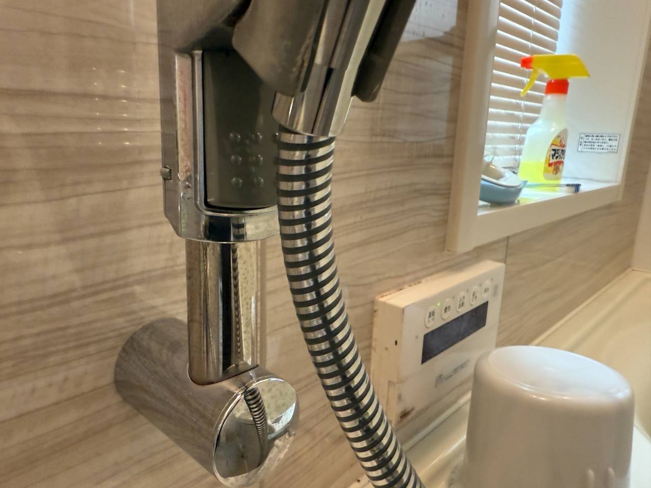 東住吉区の戸建て住宅の浴室水栓ホース取替工事です。
