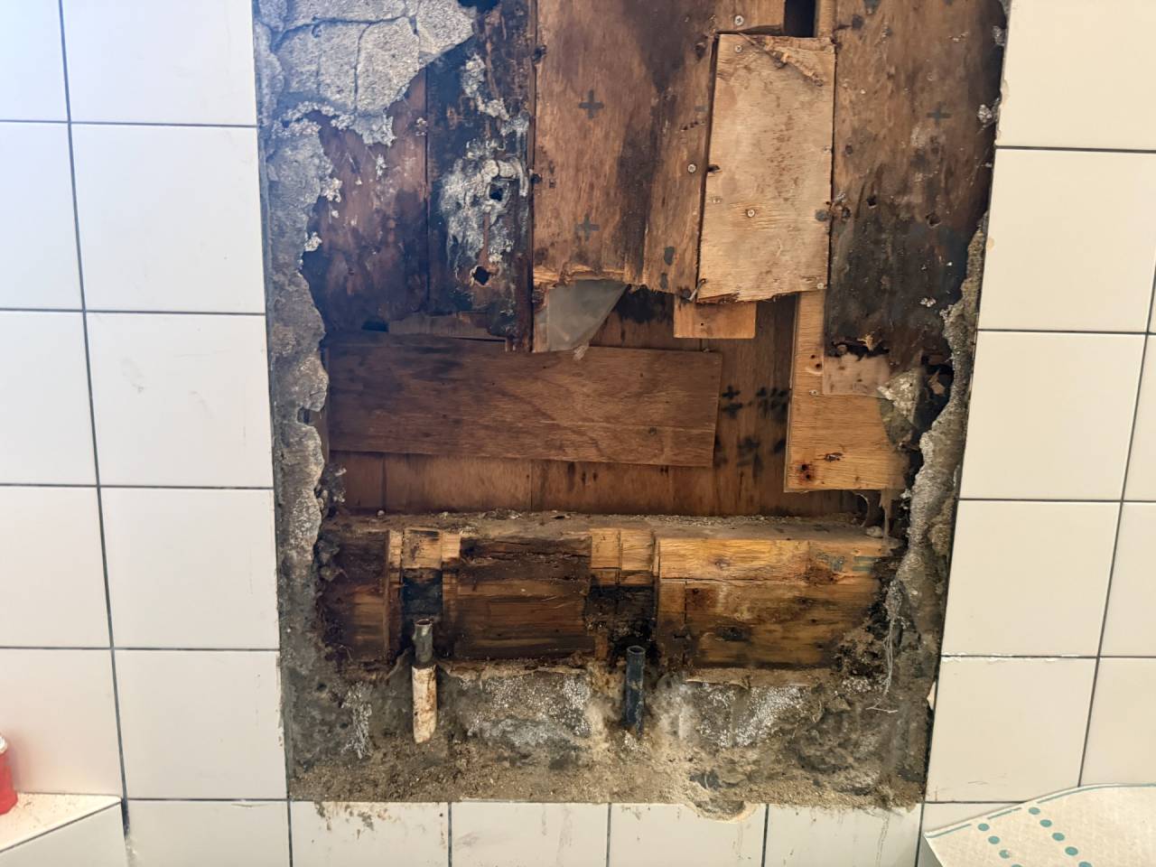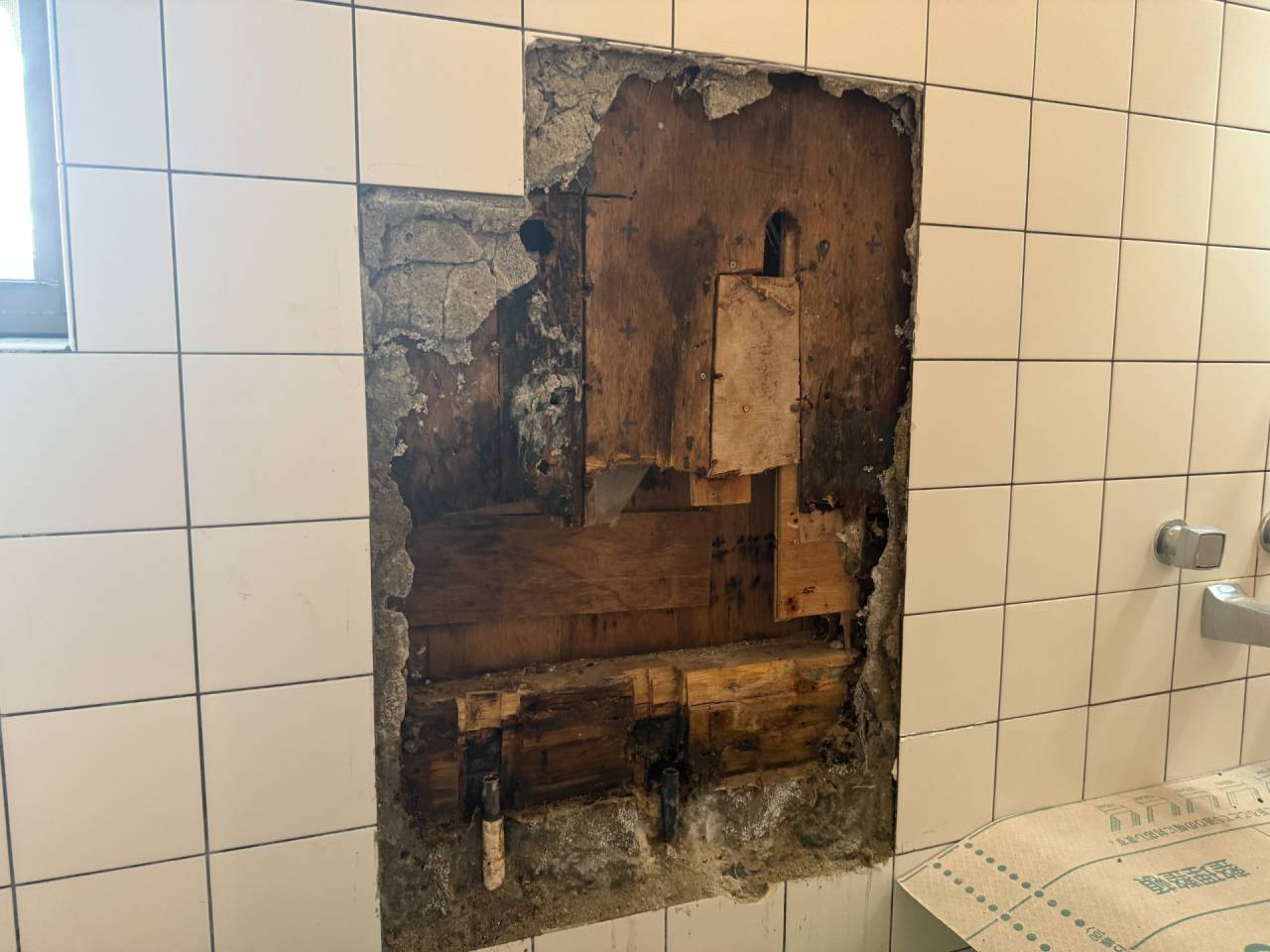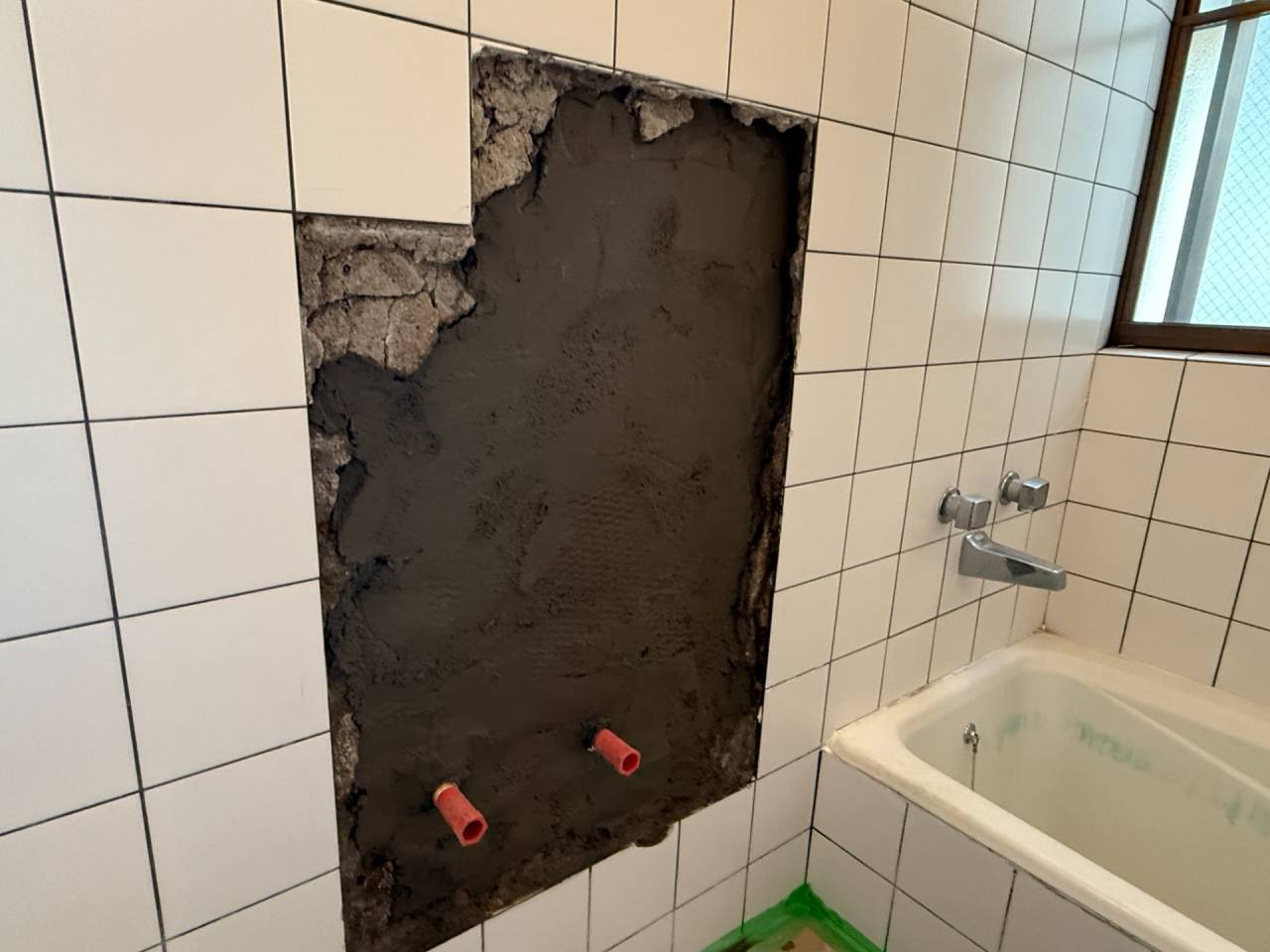 浴室裏側の外壁の下がいつも濡れている。漏水しているといわれたと問い合わせをいただきました。浴室シャワー水栓の根元の配管から漏れている可能性があり、水漏れ箇所の修繕と水栓も新しいシャワー水栓に交換して欲しいとご依頼をいただき伺ってきました。