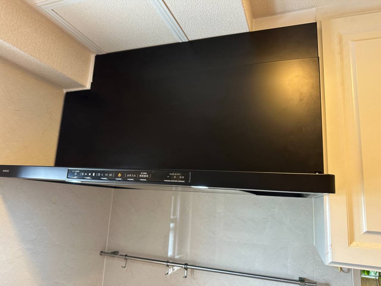 ノーリツのレンジフードのクララシリーズの幅90cmタイプです。