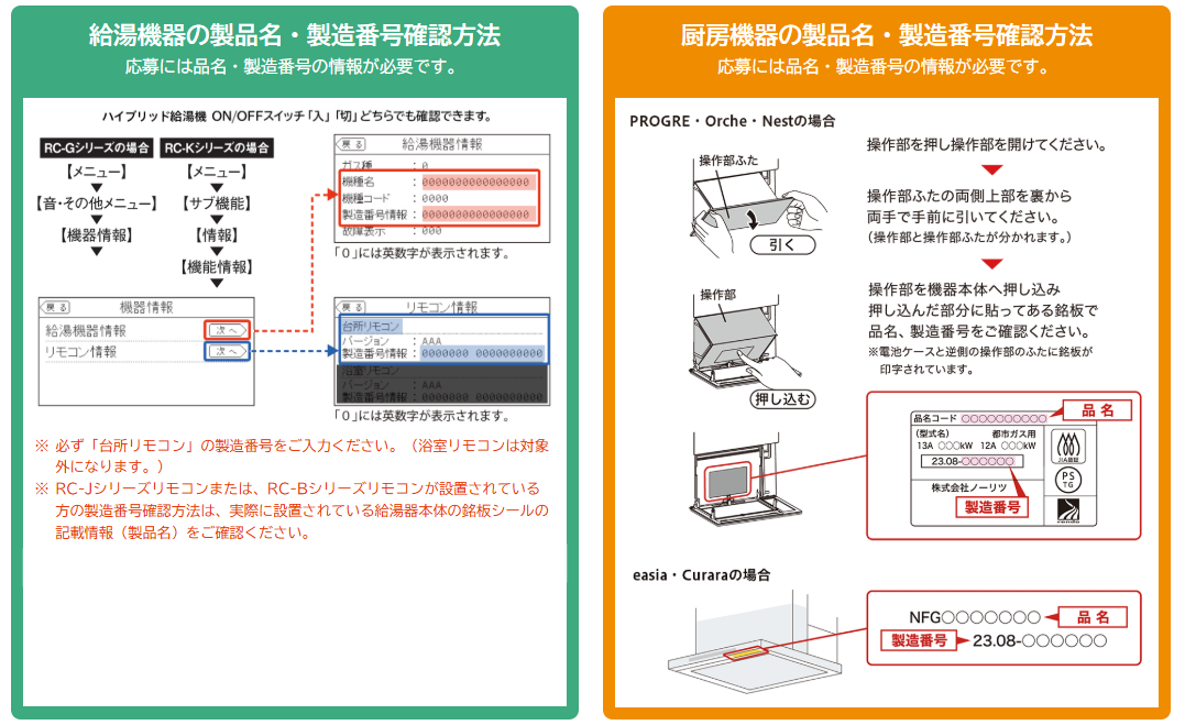 ハイブリッド給湯器の製品名・製造番号確認方法(PDF:980KB)