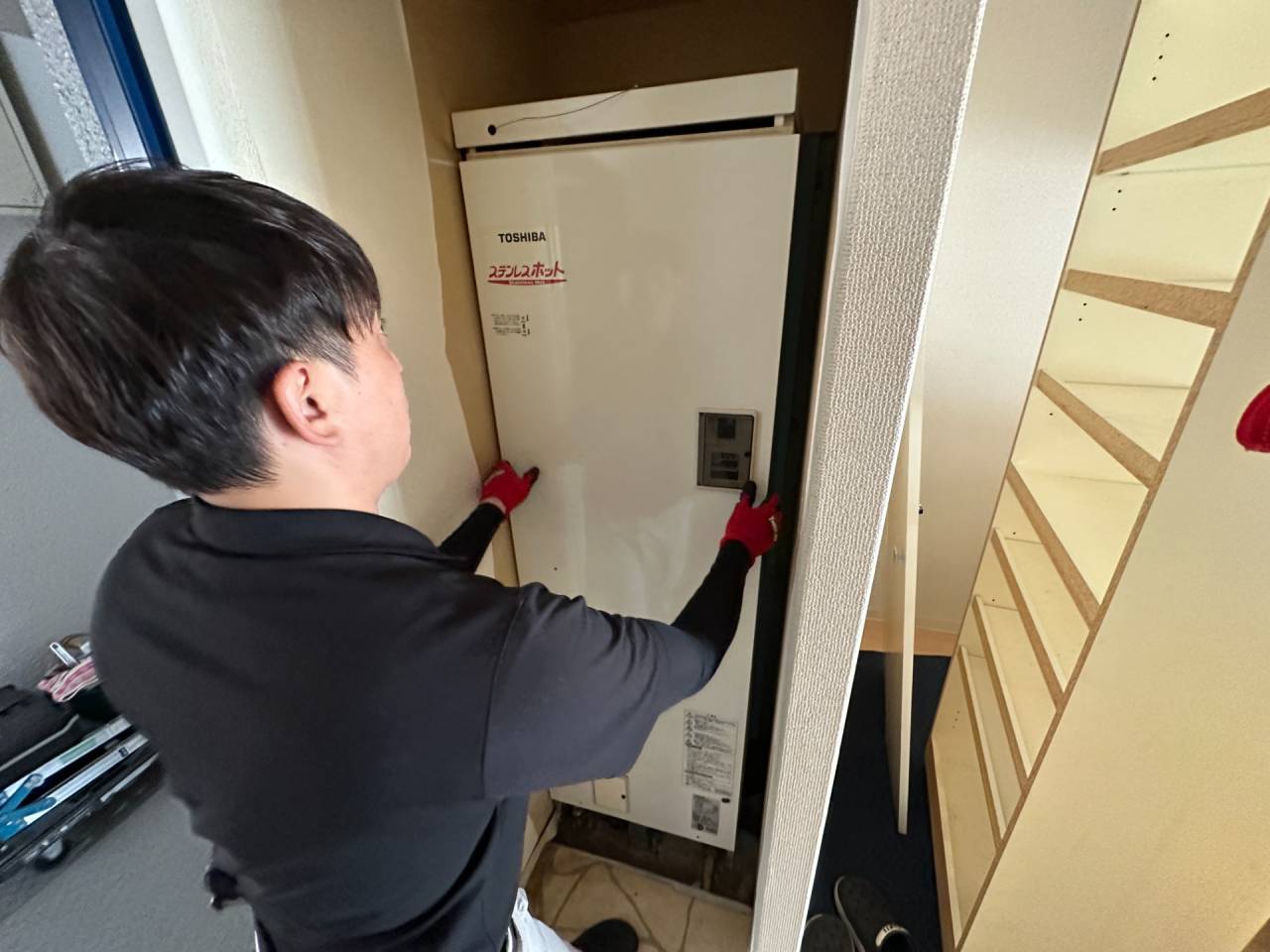 阿倍野区のマンションの電気温水器取替リフォーム工事です。