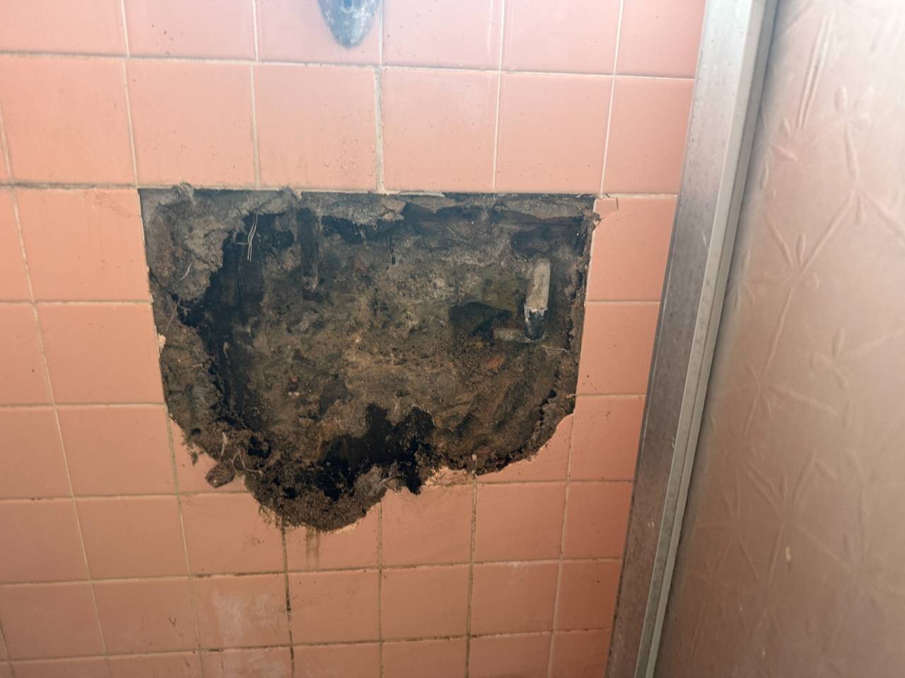 弊社に浴室の壁に埋設されてる配管から水漏れしてるので修理して欲しいと