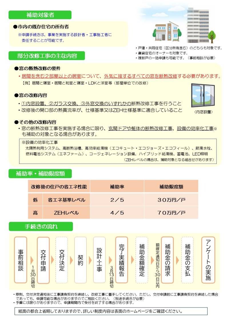 窓の断熱改修工事を実施する場合に限り、玄関ドアや躯体の改修工事・設備の効率化工事も