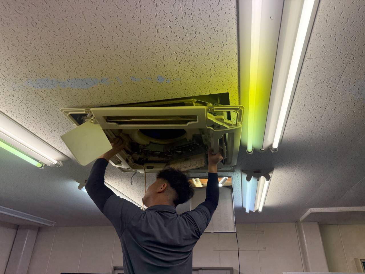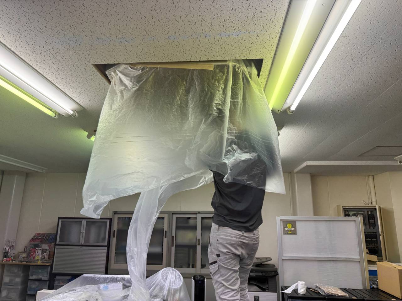 天王寺区のオフィスビルのエアコン洗浄作業です。